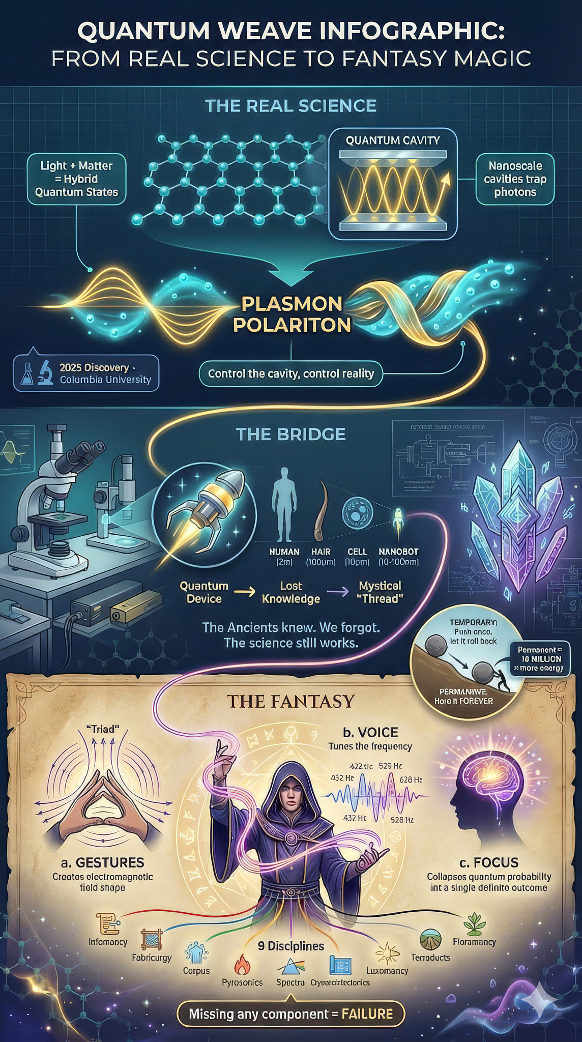 Magic in Quantum Weave is organized into nine disciplines, each grounded in quantum mechanics